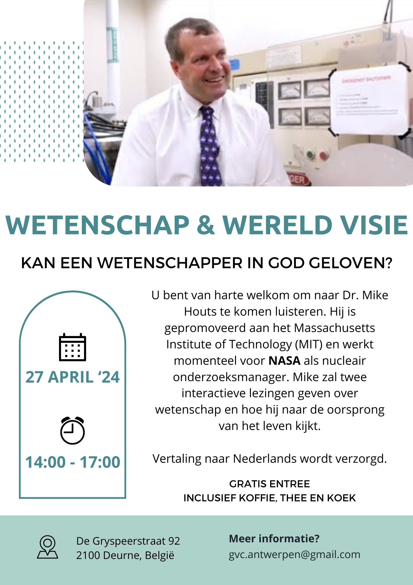 Op 27 en 28 april 2024 bent u van harte welkom om naar Dr. Mike Houts te komen luisteren. Hij is gepromoveerd aan het Massachusetts Institute of Technology (MIT) en werkt momenteel voor NASA als nucleair onderzoeksmanager. Mike zal twee interactieve lezingen geven over wetenschap en hoe hij naar de oorsprong van het leven kijkt.
